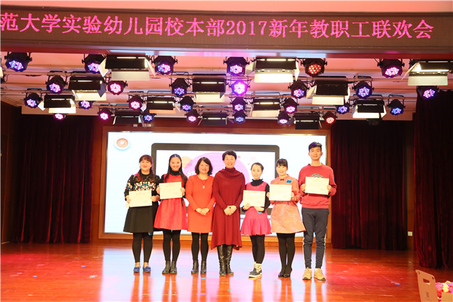 之后,黄珊总园长、杜军执行园长带领校本部行政人员给2015——2016学年优秀班集体、双优教师、幼儿心目中的好老师、家长心目中的老师以及获得新学历的老师颁发奖状和奖金。