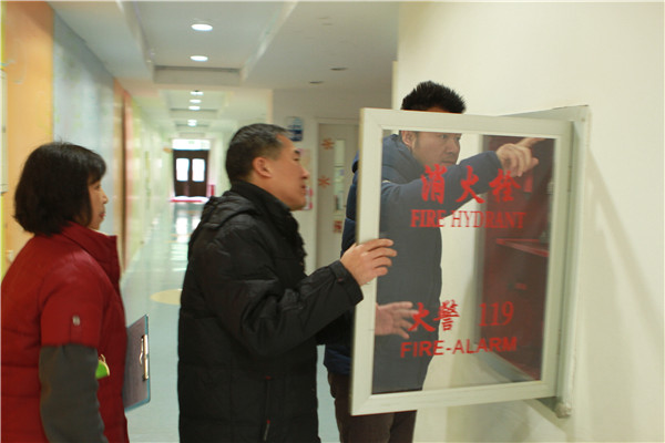 在小接待室,保卫处领导和老师首先认真详细地查看了我园各项安全检查记录,随后逐一进入各教学班、厨房以及教工宿舍进行检查,通过翻阅档案、现场检查、与各部门负责人沟通交流等多种途径,对我园的防火安全责任制落实情况、消防设施、器材配置的规范性以及安全出口的畅通性等方面进行了深入的了解。