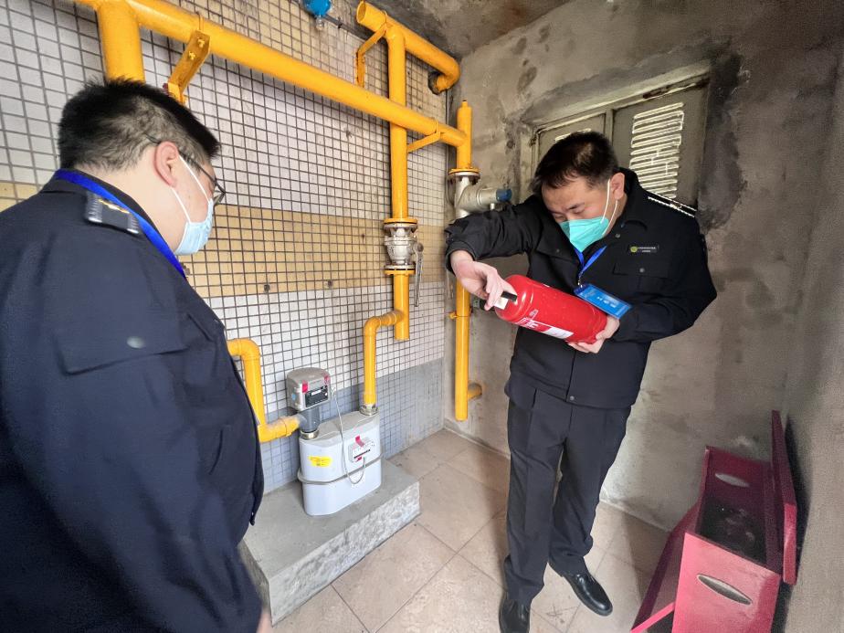 2023年3月30日下午,北太平庄街道平安建设办公室领导来园检查安全工作,保健主任靳燕负责接待。检查组领导针对厨房用火用电用气是否符合规范、消防设备设施是否配置齐全、安全通道是否畅通、库房使用是否符合要求等方面进行了全方位、精细化检查,对我园厨房各专间电器设备、燃气、烟道清洁等方面的安全管理与规范性操作给予了充分肯定。