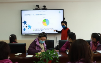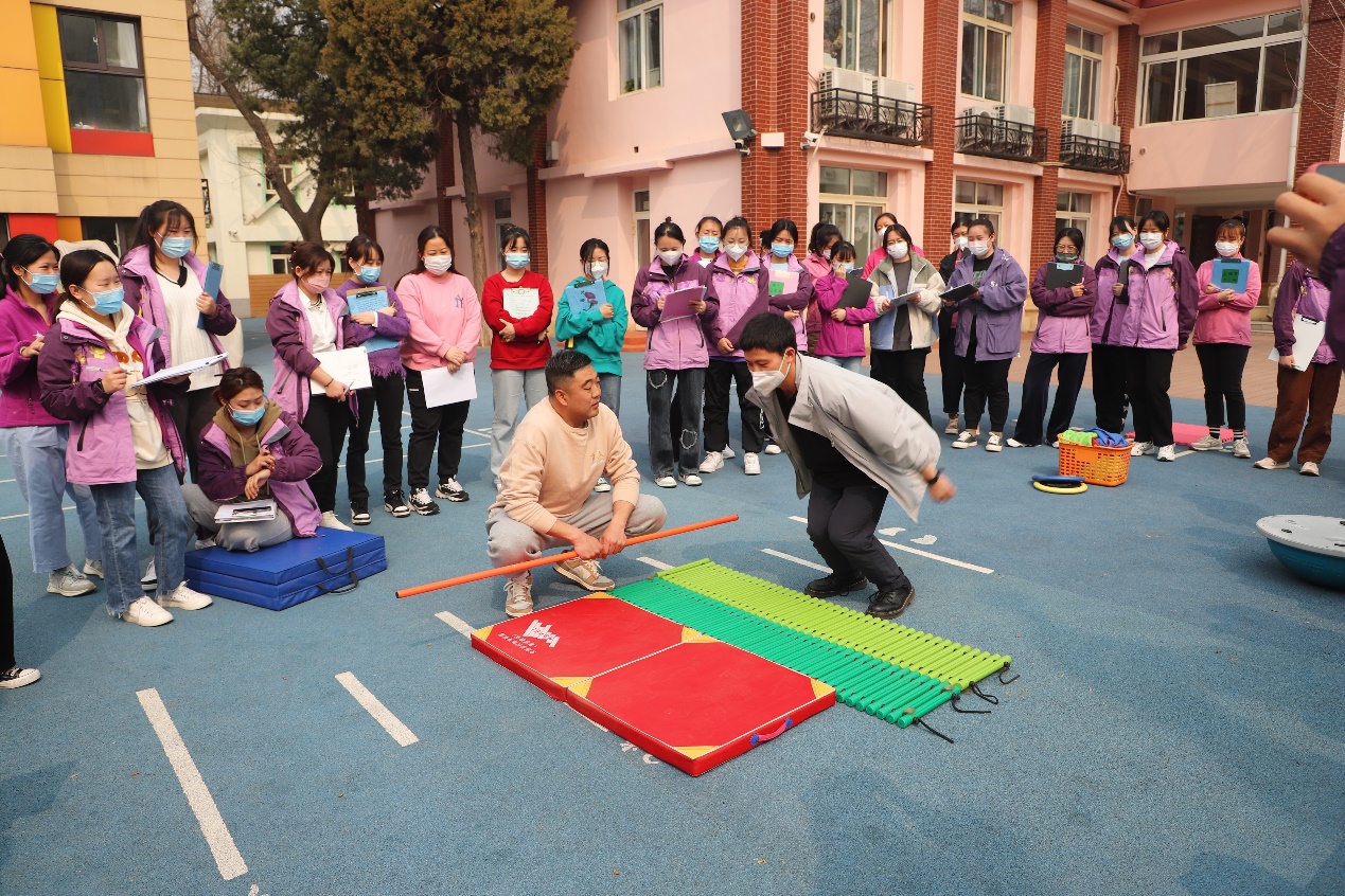 2023年3月21日中午,校本部园体育专职教师徐超针对幼儿园体质测试项目的有效指导进行了培训,80余位教师和8位保健医参加。
