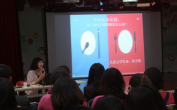 2014年4月30日,我园特邀儿童文学作家保冬妮为教师做《中外绘本比较:0-12岁关键期阅读怎么读?》的讲座。