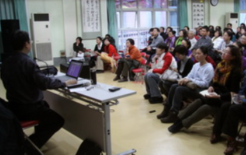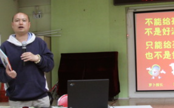 2011年4月22日中午,正值我园第三届阅读节开幕式当天,我园特邀红泥巴网站创始人、著名阅读推广专家阿甲老师,为教师做了一场《如何帮助孩子爱上阅读》的讲座。
