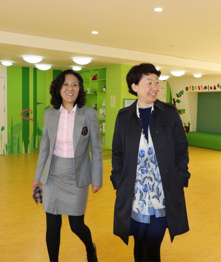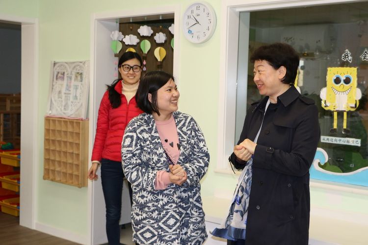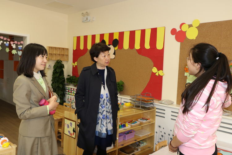 黄珊总园长在执行园长孙秀莲的陪同下参观新园环境创设并了解开园准备工作,对正规滚球app官方网站新校区幼儿园的开园给予了深切的期望和美好的祝福。