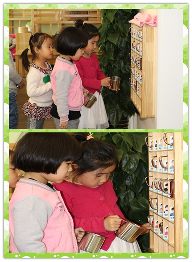 轻轻吹,慢慢喝,喝完水杯放回柜。