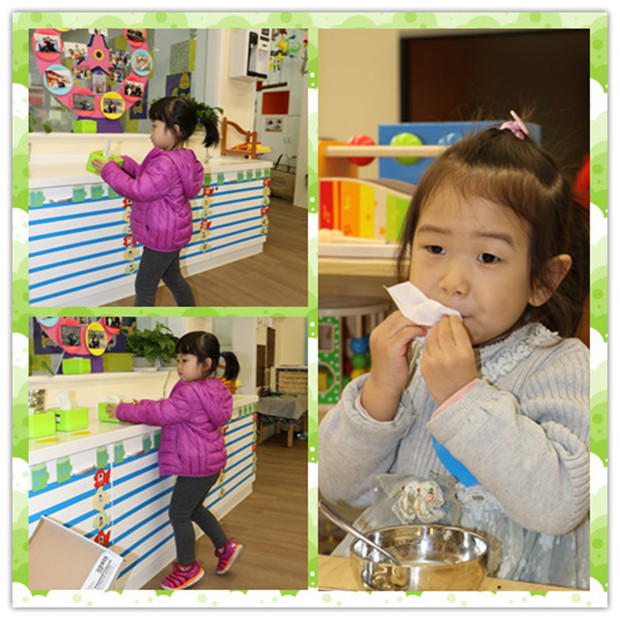 餐巾纸,四方方,拿起它,擦嘴巴。