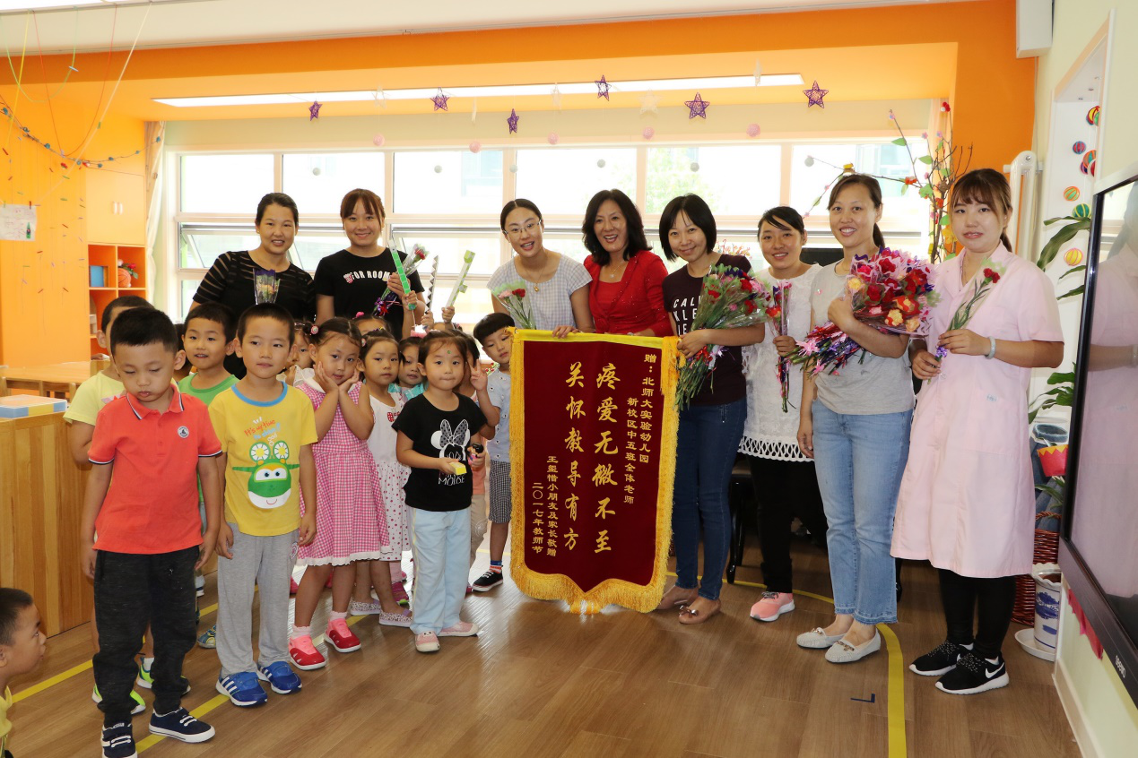 最美的年华交与最可爱的孩子,最温暖的节日属于最美丽的你们!2017年9月8日,在第33个教师节来临之际,正规滚球app官方网站新校区园迎来了第一个属于自己的教师节,在这个特殊的日子里,新校区园的老师们不仅收到了来自孙园长和主任们送来的鲜花,还有厨房老师亲自制作的点心,更有家长专程送来的锦旗。在这个温暖的大家庭里,幸福在每一个人的脸上洋溢,爱种在了每一个人的心里。
