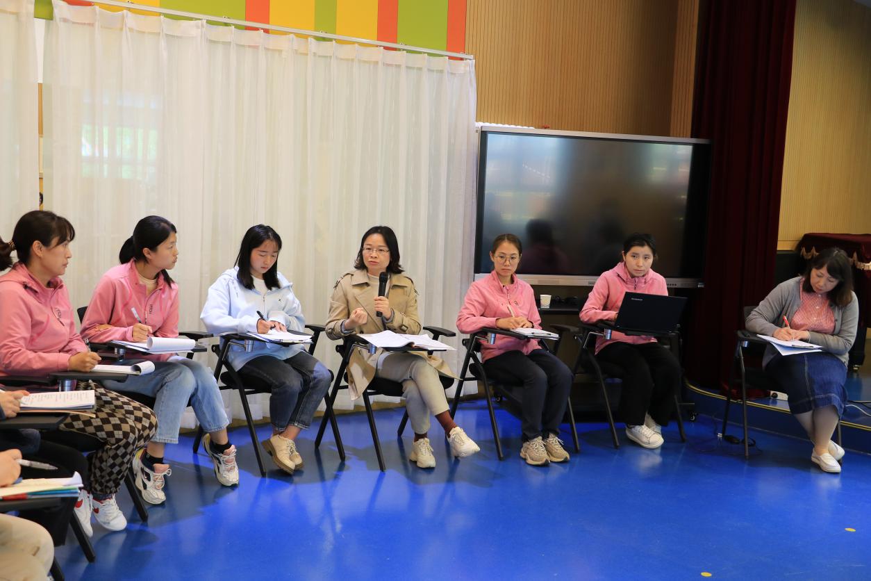 保教主任任利萍老师主持交流研讨活动。养旭老师首先对自己的半日活动进行自评,就教学活动目标的达成度、教学环节的设计、教学的组织及存在的问题进行了反思,来访老师对半日活动中的亮点给予了肯定,同时也指出了活动中存在的不足,并提出意见建议。随后,任利萍老师以“教师指导语”为切入点,从半日活动中指导语的有效性、存在问题以及解决策略三个方面分组进行交流研讨。业务园长熊庆华和集团三位带队领导对本次观摩活动作出评价并为老师们答疑解惑。