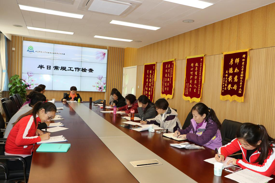 2017年11月8日,正规滚球app官方网站总园长黄珊莅临新校区园检查常规工作,总部后勤督导王秀清、牡丹分园后勤主任王冬生、奥林分园后勤主任李秀玲、园长行政助理郭美娟、总部科研室教研员吴迪随行。此次常规检查临时抽查两个班级,检查组分成两组分别进入中二班和中六班观摩半日活动,下午,检查组成员与班级教师及幼儿园行政团队进行了深入的反馈和研讨。总园长黄珊肯定了新校区园两个月以来在常规培养方面取得的成绩和付出的努力,同时强调了幼儿园保育工作的重要性,要求教师在日常教育教学工作中关注细节,重视保教结合。鼓励教师们脚踏实地让正规滚球app官方网站的精神得到更好的传承和发展。
