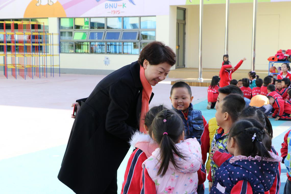 黄园长与幼儿亲切交流