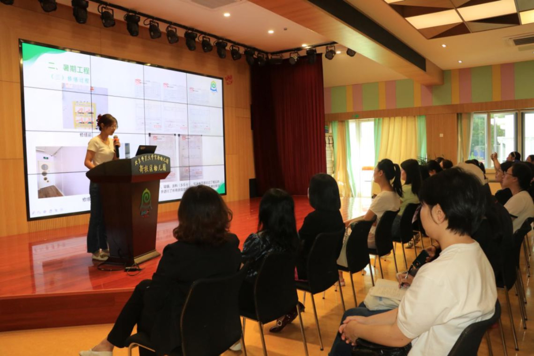 随后,总务主任董睿智向家长代表汇报了暑期工程的情况。特别是班级空气检测、水质检测等报告让家长们从环境安全、健康方面对暑期工程情况有了清晰的了解。