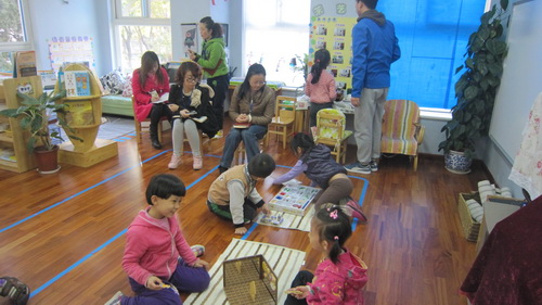 11月5日至16日,我园接待了来自四川绵阳和云南玉溪的12位幼教同行的代培学习。第一周,12位老师分3组在本部和望京分园跟随所观摩班级参与各种活动,包括随班观摩班级活动、参与会议和教研活动。周五上午在奥园分园观摩了3个教学活动并参观环境,中午参加教研活动,下午就幼儿园课程、管理等问题进行了交流与答疑。12日至16日,玉溪的2位老师在两个阅读特色班级进行了为期一周的学习,对班级里阅读活动的组织与开展进行了深入的了解和学习。