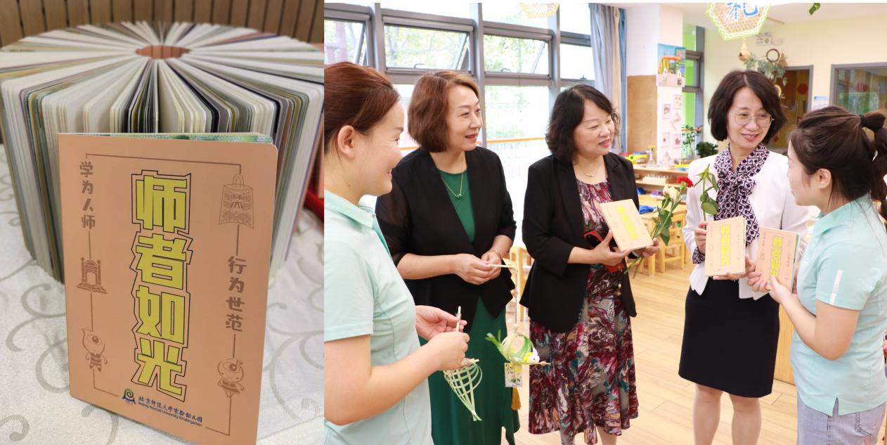 此次慰问,杜书记和夏园长还带来了我园为教师精心设计的《师者如光》笔记本,在这个实幼人专属笔记本中,体现了对教师既要仰望星空又要脚踏实地的殷殷期待。前半部分的教师誓词、党的教育方针、四有好老师以及教育家精神的内涵,鼓励教师以教育家精神为指引,积极争做新时代四有好老师;后半部分的《3-6岁儿童学习与发展指南》《幼儿园保育教育质量评估指标》,则是便于教师随时翻阅、随时反思、随时记录的掌中宝,在深入落实指南精神的过程中,努力成为能够真正读懂儿童的如光师者。