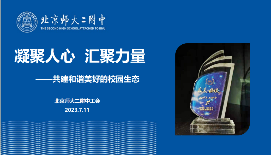 北京师范大学第二附属中学工会主席、党委/校长办公室主任、教师发展中心主任、法学博士徐书墨做《凝聚人心 汇聚力量-共建和谐美好的校园生态》的主题讲座