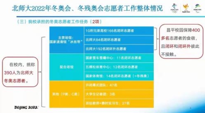 首先,校团委副书记倪佳琪介绍了2022年冬奥会、冬残奥会中我校志愿者服务工作的整体情况:本次学校共派出382名师生参与到国家速滑馆、国家体育馆、五棵松体育中心、国家雪车雪橇中心等4个竞赛场馆25个业务领域的志愿服务工作,承担了冬奥会开幕、冬残奥会闭幕式以及OIS大学生记者团等重要工作任务。为及时总结冬奥服务保障工作中积累的先进经验,做好北京冬奥会精神文化遗产转化工作,我校组建了“我和我的冬奥故事”青春宣讲团。