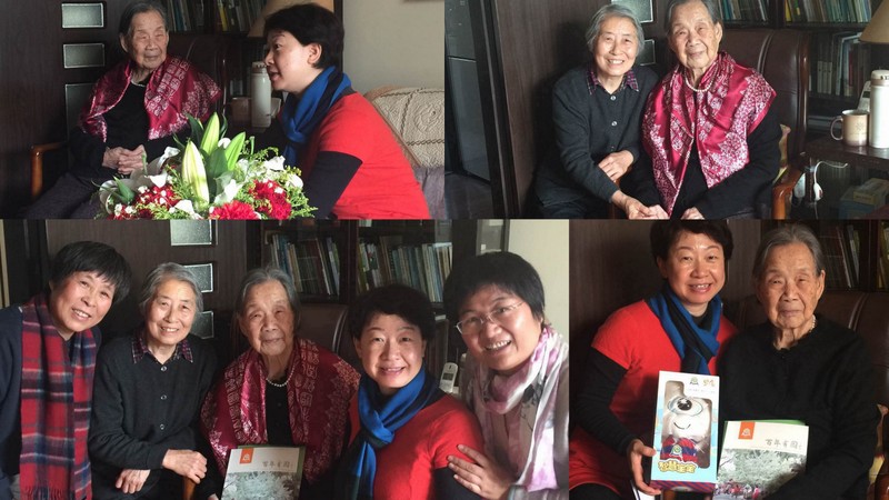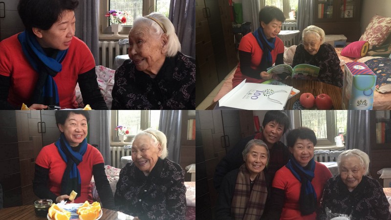 百年名园滋养百岁教师,在走访中,滚球app第一高寿老人---102岁的段裔老师鹤发童颜,和黄园长一行谈笑风生。100岁的卢乐山先生,精神矍铄,非常健谈。经历一次骨折的86岁的周南园长逐渐恢复,黄园长仔细的询问周园长的治疗和康复情况,并一再叮嘱有需要联系幼儿园。住在北安河敬老院88岁的景秀珣老师,经常神志模糊,但一见到黄园长脱口就说“黄珊来了”,让她的女儿非常惊讶和感动。93岁的武宗琦老师长期卧病在床,不能说话,黄园长拿着百年园庆的画册一页页的翻,细细的给她讲述,场景温暖而感人。83岁的王金贵老师听说园长要来看她,扔掉了拐杖,走出好远来迎接大家,就是要让大家看看,她的身体很好,让幼儿园放心。83岁的刘力贞、82岁的田宗慧老师非常喜欢黄珊园长送来的百年园庆吉祥宝宝,抱在怀里,爱不释手。老教师们对幼儿园的看望表示感谢,并祝愿幼儿园再上新台阶。