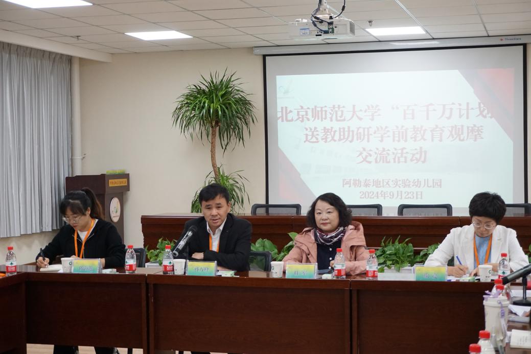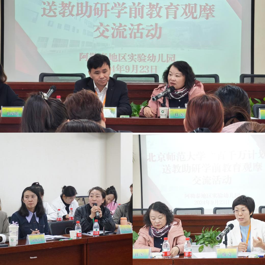 2024年9月23日,幼儿园党总支书记杜军、园长助理鞠亮受邀参加北京师范大学“百千万计划”新疆送教助研活动。此次活动由北京师范大学继续教育与教师培训学院组织,阿勒泰地区教育局主办,旨在助力阿勒泰地区基础教育扩优提质。