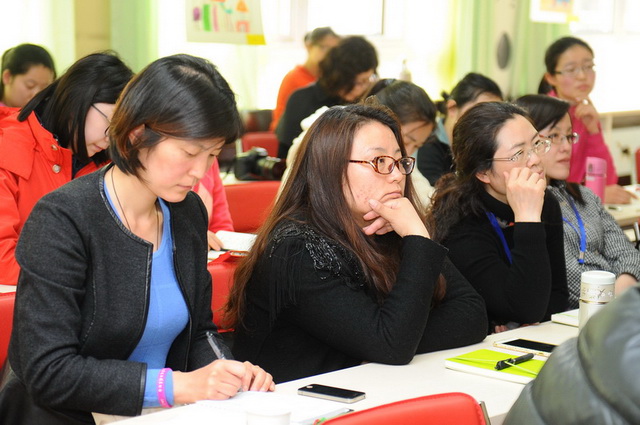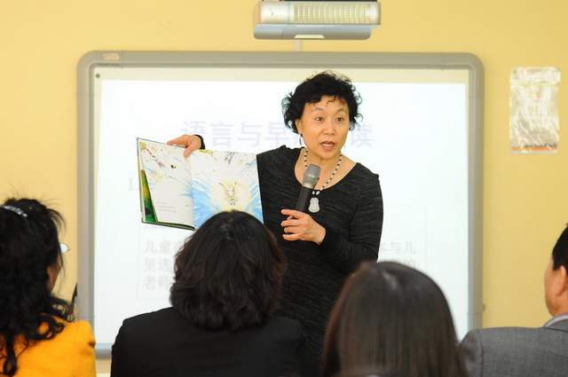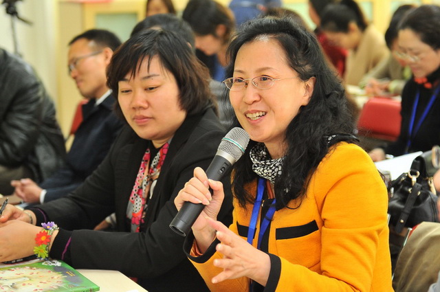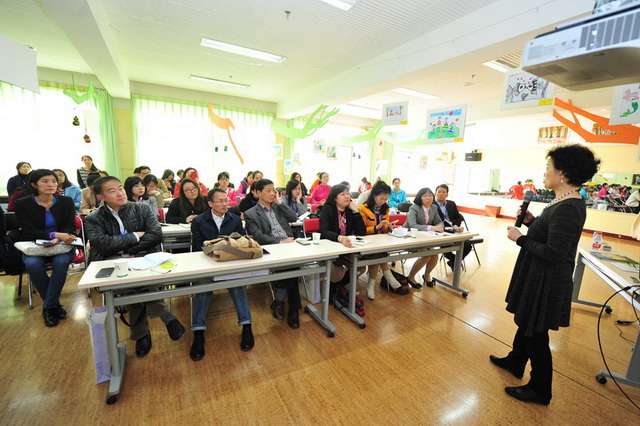 在校本部园的音乐教室,50多位来自正规滚球app官方网站“关于幼儿发展性评价的实践研究”课题组的教师、黄珊园长工作室的学员以及部分国内同行深入探讨“关于儿童发展评价”的主题。美国芝加哥埃里克森儿童发展研究院的陈杰琦教授做题为“在教学中评价,为教学而评价”的发言,并积极引导与会者在具体操作中体验幼儿的学习特点,以便更有效地掌握在教学中评价的方法。