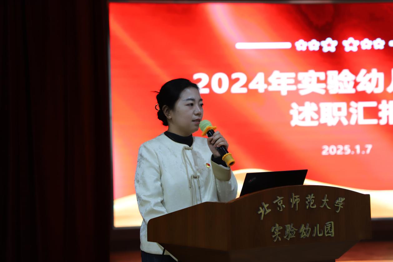 随后,幼儿园团委书记李灵子从强化政治引领、加强组织建设、培育志愿先锋、赋能专业发展,四个方面汇报了幼儿园团委在过去一年以来取得的成绩与不足,以及下一步的努力方向。