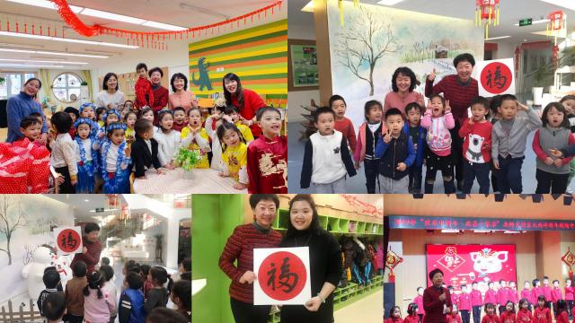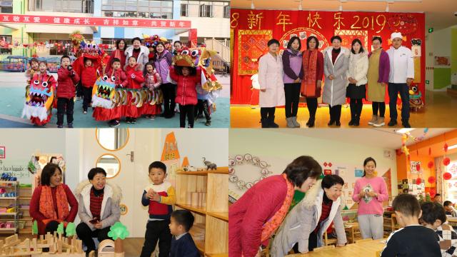金猪送福祈祥瑞,玉兰童子闹新春。2018年12月20日至29日,在2019年新年来临之际,黄珊总园长先后前往七园及发展中心参加喜庆热烈的新年庆祝活动,并向小朋友、家长和教职工致以最美好的新年祝福。今年幼儿园新年活动的主题是“互敬互爱,健康成长,吉祥如意,共贺新年”,其中“互敬互爱,健康成长”是正规滚球app官方网站的园训,蕴含着家园之间、师幼之间、教师之间、幼儿之间和谐共处、协同发展、共谱未来的美好意愿。在部分园所,黄珊总园长还参加了教职工新年联欢会并致新年贺词,与大家欢聚一堂,喜笑言欢,回首过去,共同展望新一年的到来。