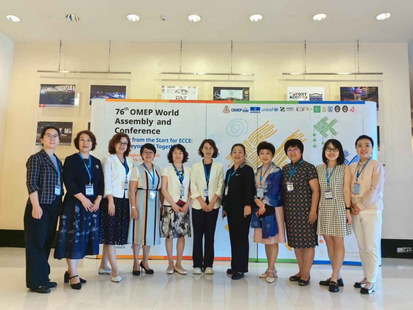 7月15日至7月19日,我园夏华颖、徐翠凤、高以华、吴媛媛、杨海燕、邱守、徐兴芳、滕瑾、李琳、李灵子及何字娟11位教师受邀参加了2024年世界学前教育组织(OMEP)第 76 届国际学术研讨会并做交流发言。本次大会在泰国曼谷举行,大会主题为“早期保育与教育启航:共创未来,携手前行(Right from the Start for ECCE: Step Beyond All Together)”,来自世界各地多个国家的幼教工作者纷纷齐聚于此,共同探讨学前教育的前沿理念和实践经验。