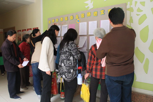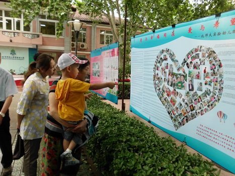 家长、孩子及教师观看展板