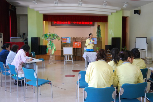 2011年师德建设活动的主题:享受职业幸福! 全园教职工师德征文及演讲、展示,是我园2011年师德月活动之二。该活动紧紧围绕“享受职业幸福”的主题,希望活动能启发老师们在日常的工作中发现爱、感受爱、付出爱、收获爱;感受平凡工作的非凡意义,体验工作的价值与成就;在感受与体验的基础上增强对幼儿园工作的热爱之情。 活动方案确定之后,各园精心组织,全园教职工积极参加,上交的征文内容包括了“以儿童为本”的教育故事、师生间感人的教育故事、同事间的温暖故事等。各园以不同形式组织了师德演讲,各岗教职工以“爱”为主线,发自肺腑的真情流露出自己在工作中发现的爱、感受的爱、付出的爱、收获的爱,活动现场时而掌声阵阵、时而庄重静默、时而温情动人。老师们用朴素真诚的语言讲述着发生在自己身边的与幼儿、与家长、与同事间的点滴故事。在点滴故事中、在平凡的岗位上再次体味和享受职业的幸福! 与此同时,各园制作了图文并茂、可读性强的展板,使全园教职工及家长都能够分享这些爱的感人故事。此外,在师德月活动中,各园还结合各自情况开展了其他形式的活动,如面向家长开展“我评师德之星”、采访老教师和师德标兵等。 爱,能温暖人的心灵;爱,能鼓励人一直朝前迈进。此次师德征文及演讲、展示活动不仅是我园广大教职工对工作中幸福的体会和感悟,更是对爱的理解和升华,这股汇聚的爱的暖流将鼓励和推动着滚球app继续携手向前! 师德征文演讲现场