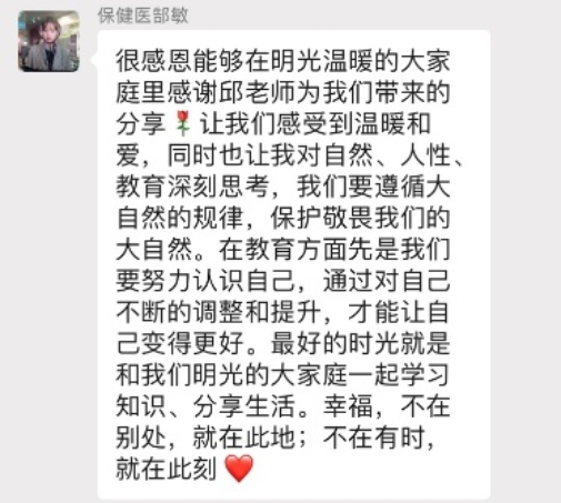 娓娓道来的讲述,也引发了老师们的些许触动和有感而发。这也是明光教师对黄珊总园长提出的“幸福工作,卓越发展”的一种践行。