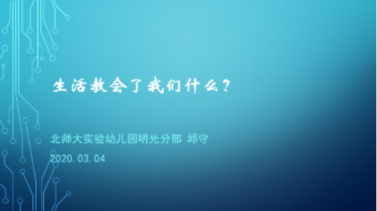 3月4日,第二讲主题是《生活教会了滚球app什么?》。邱园长结合自己日常生活中的事件和感悟,和滚球app分享了她对生活中“莽撞而至”或“悄然无息”带来改变的理解,引发大家更加悦纳此次“无常”且“突如其来”的疫情生活。她也真实地和滚球app分享自己受挫时的不良感受,以及意外惊喜的美好,让滚球app知道最美好的事和最失望的事都不是计划出来的,把握好每一个当下,生活意义才有可能更大化。
