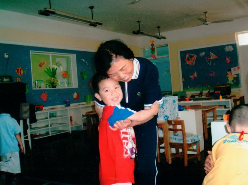 段裔老师年轻时在幼儿园为婴儿洗澡时的工作场景