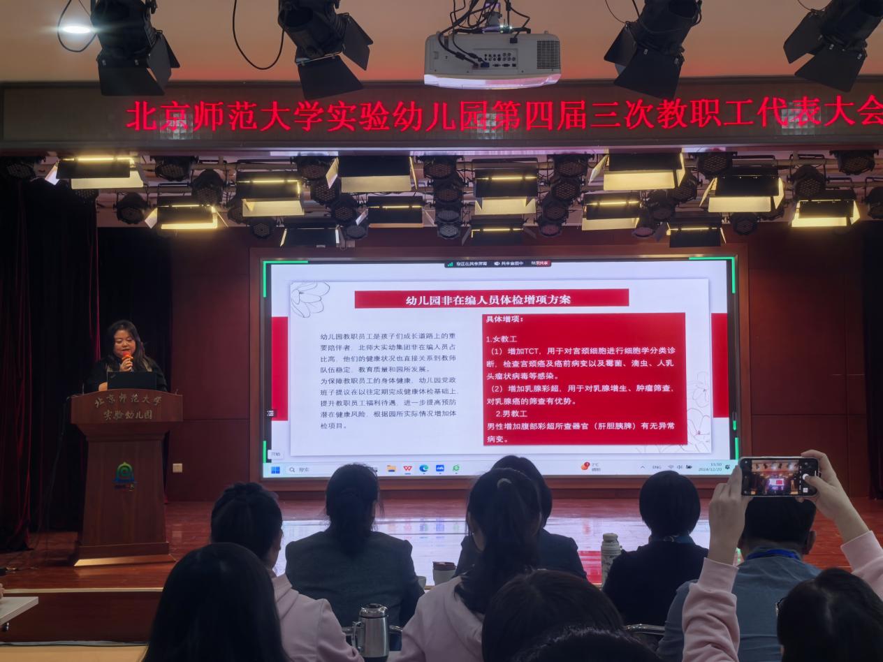 经过代表们的审议和表决,会议顺利通过了教代会执委会委员的增补选举以及非在编人员体检项目增项的提案。这不仅体现了幼儿园党总支及党政班子团队对全体教职工健康权益的深切关怀,也彰显了幼儿园在保障教职工福利、提升教职工幸福感方面的坚定决心和实际行动。