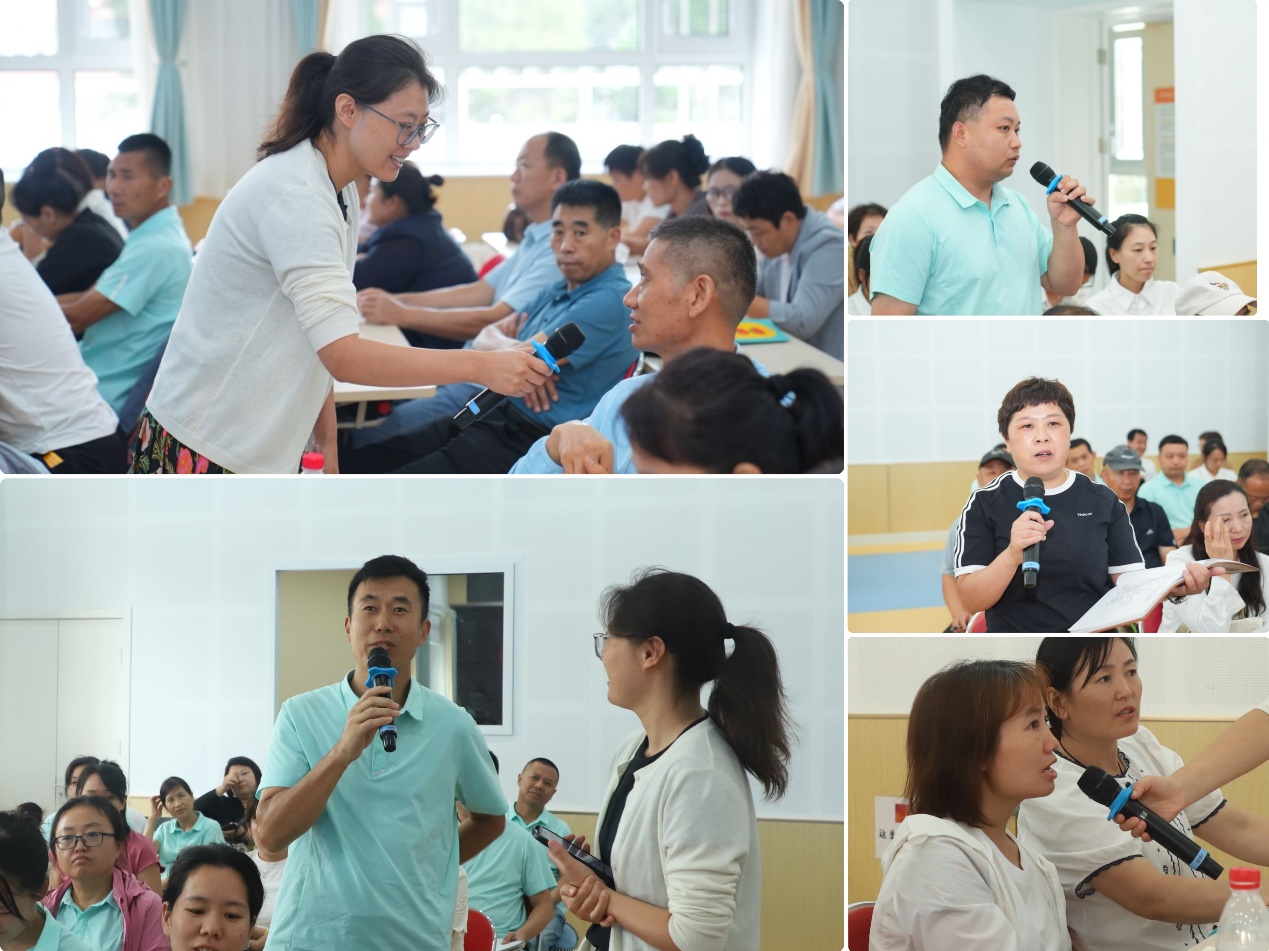 会场一由总部教研员吴迪老师主持,其核心价值在于聚焦后勤厨房管理共性困惑,通过“经验分享+集体研讨”激活集团智慧,合力破解关键问题,为后续管理提质增效指明方向。暑期前,总部团队深入各园一线开展深度调研,期间与各园团队紧密协作,共同挖掘厨房管理工作中的亮点,并结合集团发展需求,最终提炼形成6个以厨房安全为核心的主题。11位讲师(含多园总务主任、厨房主管、保健医)围绕食材烧熟煮透、消毒流程、厨房安全操作指南等内容授课,同步分享原创课件,现场互动热烈,有效强化了后勤人员的安全规范认知。