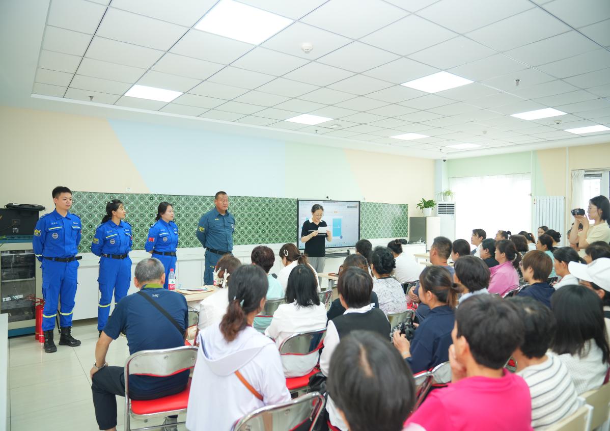 会场二基于响应《学前教育法》“保护幼儿身心生命安全”的法定要求,同时也为了更加有效地应对校园地震、火灾等突发风险,特邀蓝天救援队曹春利团队开展《防灾减灾进校园》培训。课程涵盖地震防护、消防安全、突发事件应对三大理论模块,同步开展灭火器操作、心肺复苏、海姆立克急救法实操演练,全方位提升后勤人员应急处置能力。