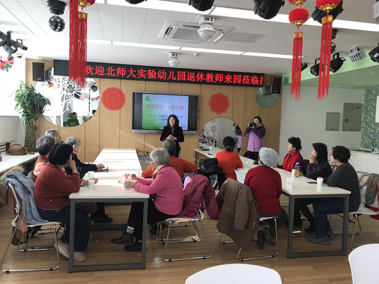 这是2016年12月迎新年茶话会上退休教师与黄珊园长的一段对话。时隔一年,2017年12月21日,阳光温暖、天空湛蓝、空气清新,是北京冬日里难得的好天气。在总园长黄珊的策划安排下,11位退休教职工怀着欣喜与激动的心情前往正规滚球app官方网站新校区园参观,新校区园执行园长孙秀莲予以热情接待。