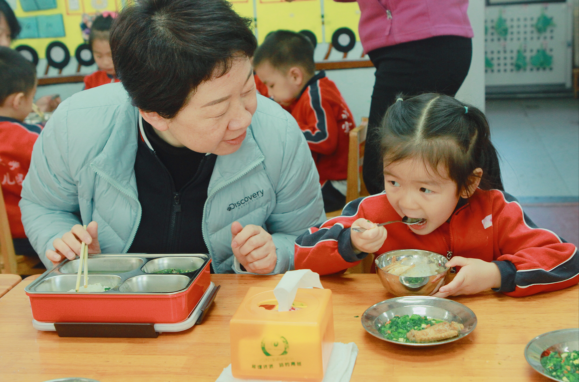 4月1日,在三餐开餐前十分钟,总园长黄珊及各园执行园长、保教主任、总务主任以及教研员等食品安全责任人走进班级,坐在小朋友中间一同进餐,食品安全责任人通过亲自品尝儿童餐,观察幼儿的进餐情况,对儿童餐的外观、口味、烹饪火候、食材新鲜度、营养搭配以及幼儿喜爱程度等情况进行关注,随后填写陪餐记录表,上交厨房管理员。厨房管理员每天查看陪餐记录表,随时改进,同时幼儿园将每月对陪餐记录进行总结,在每学期伙委会上向家长代表汇报陪餐情况。