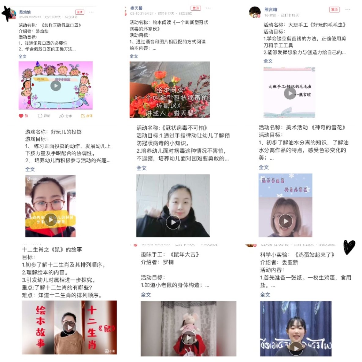 明光分部因未开园,所以一线教师都在各分园跟岗学习,疫情期间,她们和所在班级的老师们一起并肩携手,尽自己的力量,积极参与到家教指导活动中,让疫情期间的孩子们也一样享受好玩的游戏,享受快乐。