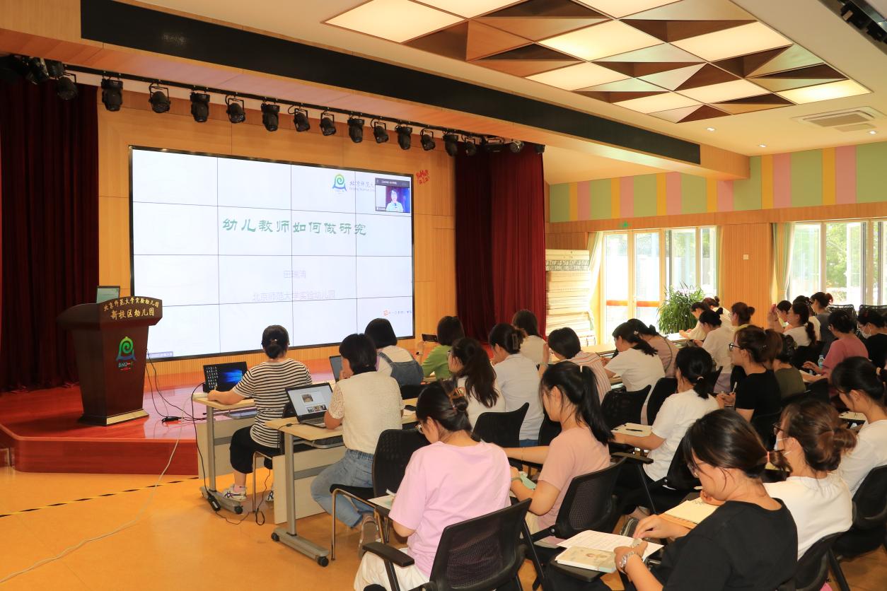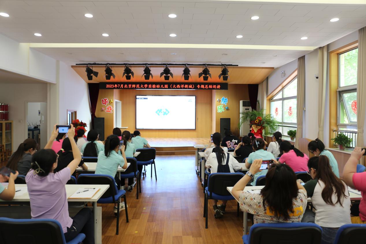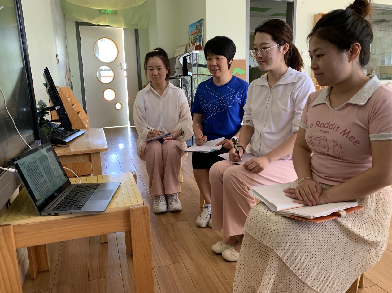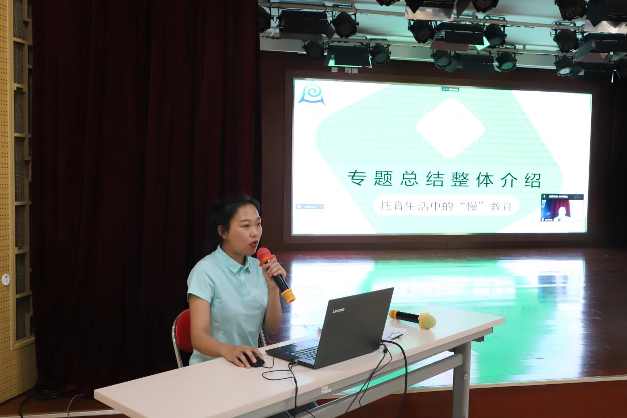 2023年7月7日,我园第一届专题总结分享会如期举行。分享会由总部研究中心执行主任田瑞清主持,八所园的主班教师参加,活动采用线上线下相结合的方式进行。首先,田老师围绕“幼儿教师如何做研究”作专题培训,帮助教师明晰幼儿教师的研究是日常教育实践中的行动(“做”)研究,并结合具体实践案例向大家介绍了教师如何做研究,其中特别强调书写专题总结的前提是开展专题研究,要制定专题研究计划。其次,五位教师分别从文章框架思路、选题思考、研究方法、研究结果、收获反思等方面向大家介绍了自己的专题总结。五位教师专题总结名称如下:孙萌萌《托育生活中的“慢”教育》,孙晓慧《帮助被拒绝幼儿重回集体的策略研究——以X园中班幼儿东东为例》,赵冰洋《疫情下做好新班家园共育的一些感悟》,张静《幼儿发展性评价中期评价小结》,魏若玉《“环”美自然,“境”润童心——自然教育视角下植物角的创设与指导》。