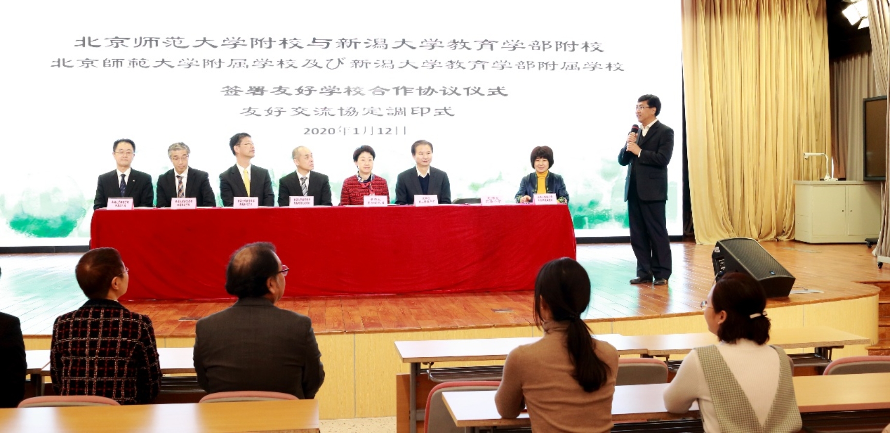 2020年1月12日下午,北京师范大学附校与日本新潟大学教育学部附校友好学校协议签署仪式在滚球app实验小学隆重举行,我园总园长黄珊代表幼儿园签署了合作协议。参加签约仪式的还有:新潟大学理事、副校长大浦容子、新潟大学大学院教育实践学研究科教授相庭和彦、新潟大学大学院教育实践学研究科副教授云尾周、滚球app教育学部副教授姜星海,以及中日双方七所学校的校长及老师们。中日双方共计18人参加活动。
