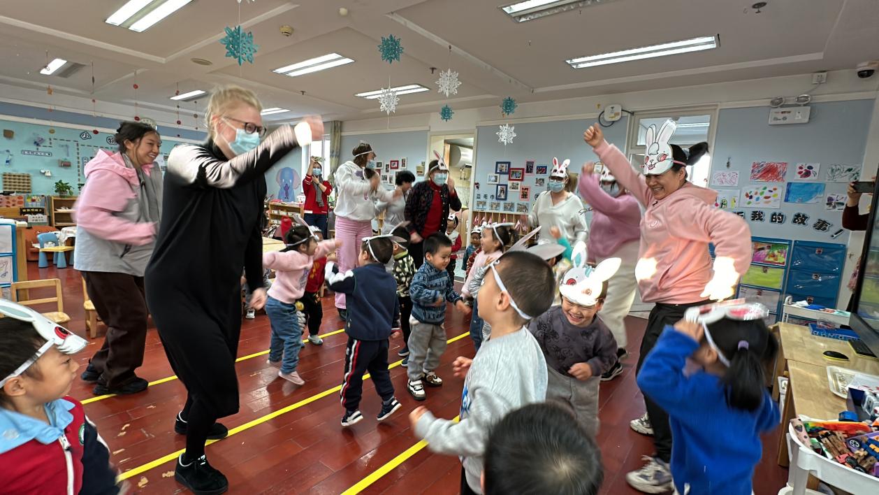 在参与教育实践活动中,我园教师和芬兰师生共同研讨,将两国文化元素融入活动组织中,大家一起唱歌、跳舞、游戏,气氛欢快融洽。这种共同实践模式不仅推动了中芬教师在教育方法上的相互学习,还成功构建起一种跨文化、相互交融的课程实施方式。