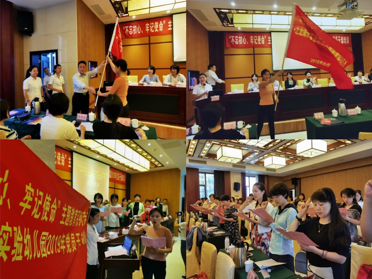 随后,李奎联同志向本次培训班授予班旗。全体党员干部面对班期宣誓,气氛庄严隆重,飘扬的班旗标志着本次“不忘初心,牢记使命”党性教育培训班正式开班。