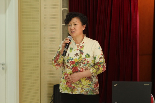 游泳副园长代表新疆阿勒泰地区实验幼儿园子课题组汇报