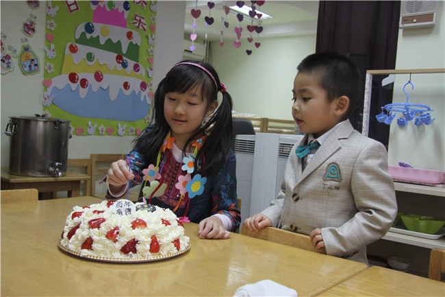 校友大姐姐带着小弟弟一起插生日蜡烛