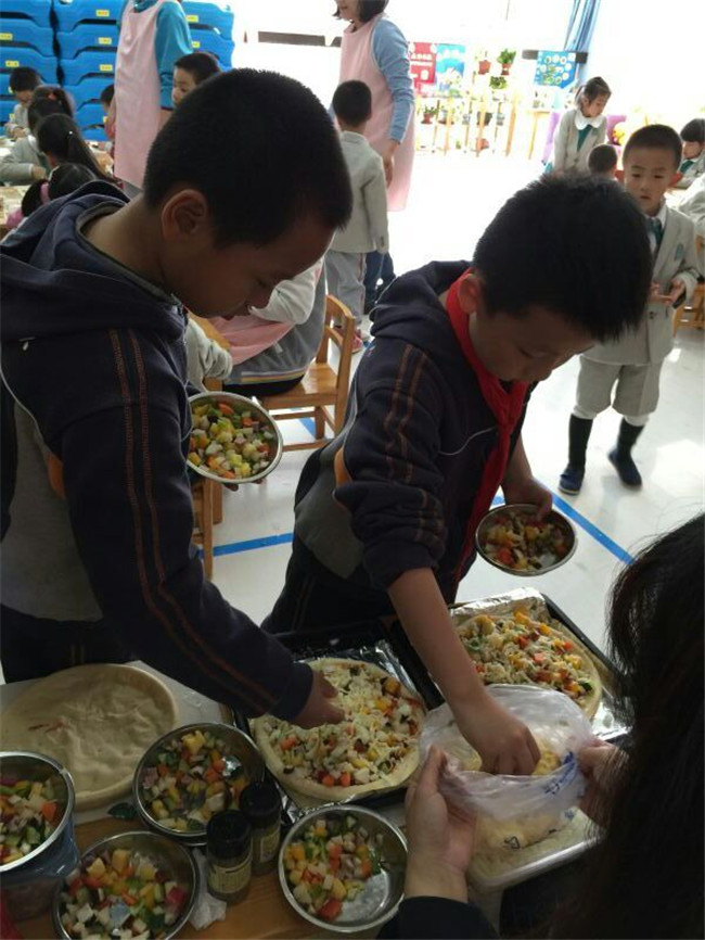 和老师小朋友一起开party庆祝园庆——自制披萨