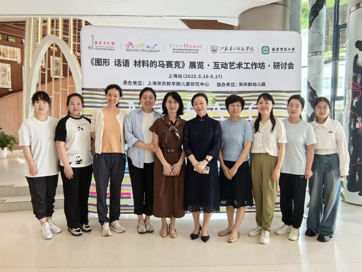 上海学习之行由鞠亮、王昕昕、鲁珍、谢红玉四位代表,分别围绕研讨会讲座核心内容、宋庆龄幼儿园环境观摩见闻感受、《图形·话语·材料》的马赛克展览以及互动艺术工作坊四个主题展开,通过PPT分享和现场的艺术互动,传递高质量托育实践中儿童视角的多元实践路径。