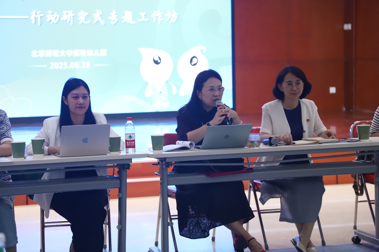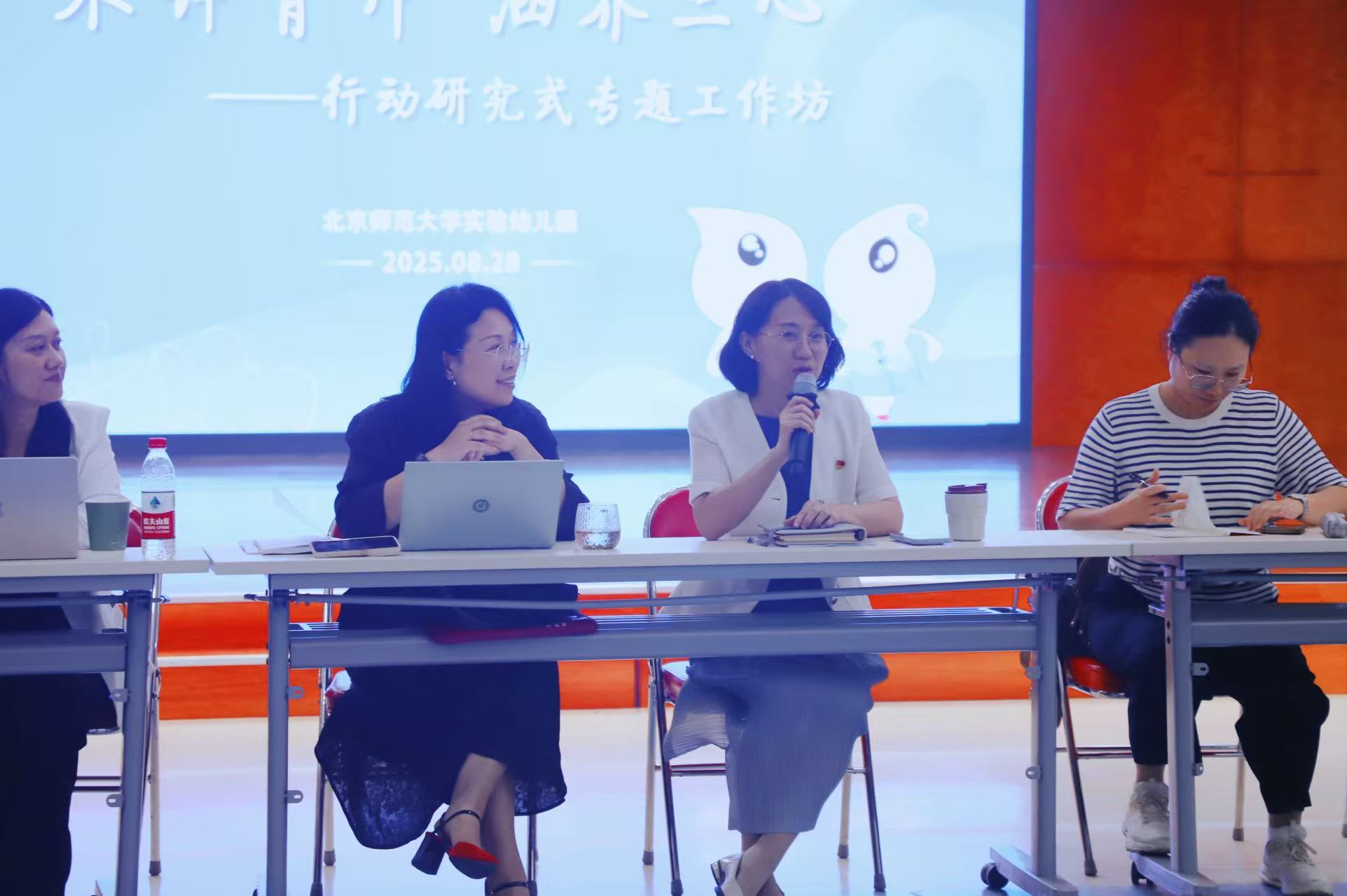 2025 年 8 月 28 日下午,我园以“木铎育师?涵养三心——行动研究式专题工作坊”为主题,开展开学第一课活动,通过十大专题聚焦幼儿园教育实践核心议题。活动由园所业务园长、保教主任及教研主任分别主持,以案例分享、互动研讨、实践操作为主要形式破解教学难题,《学前教育》编辑部副主编程洁带领编辑团队到场听取分享并提供专业点评与反馈。
