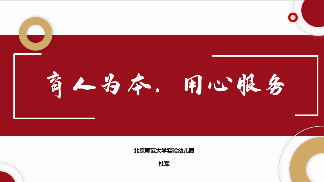 杜军园长从“明德于心 服务师生 ”“服务以专 助力家长”及“服务以情 促进学前教育优质均衡发展”三大方面分享了自身主题教育学习体会、个人成长心路历程和人生高质量发展的智慧。杜军园长基于幼儿园工作中的具体事例对“以儿童为本,服务育人”的思想以及“环境育人”办园特色的实践推进给与了深入浅出的分析。她身怀一颗“赤诚之心、奉献之心、仁爱之心”,将自己的奋斗年华奉献给深爱的幼教事业,采取有针对性的措施抓实事落实,让广大家长、教师的信任感、幸福感更加充实、更有保障、更可持续。