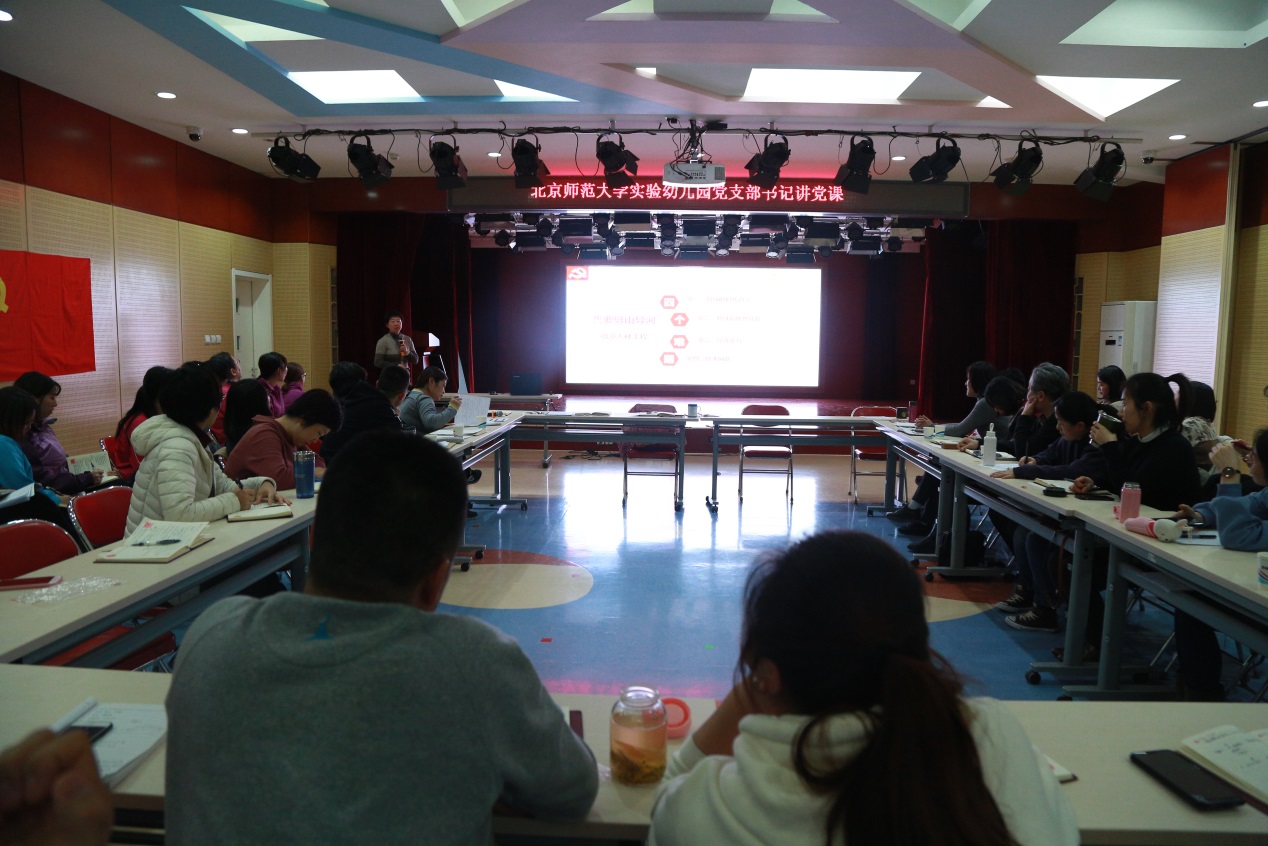 2018年12月6日,幼儿园党支部在校本部园多功能厅召开全体党员大会。黄珊书记为党员同志带来《难忘岁月——红旗渠的故事》的主题党课。本次党课取材于2018年10月10—12日,黄珊书记随北京师范大学党委组织部赴河南红旗渠干部学院参加“牢记十九大使命,弘扬红旗渠精神,做合格共产党员”的专题培训。黄珊书记图文并茂地介绍了我国20世纪70年代两大奇迹之一的红旗渠的修建过程。