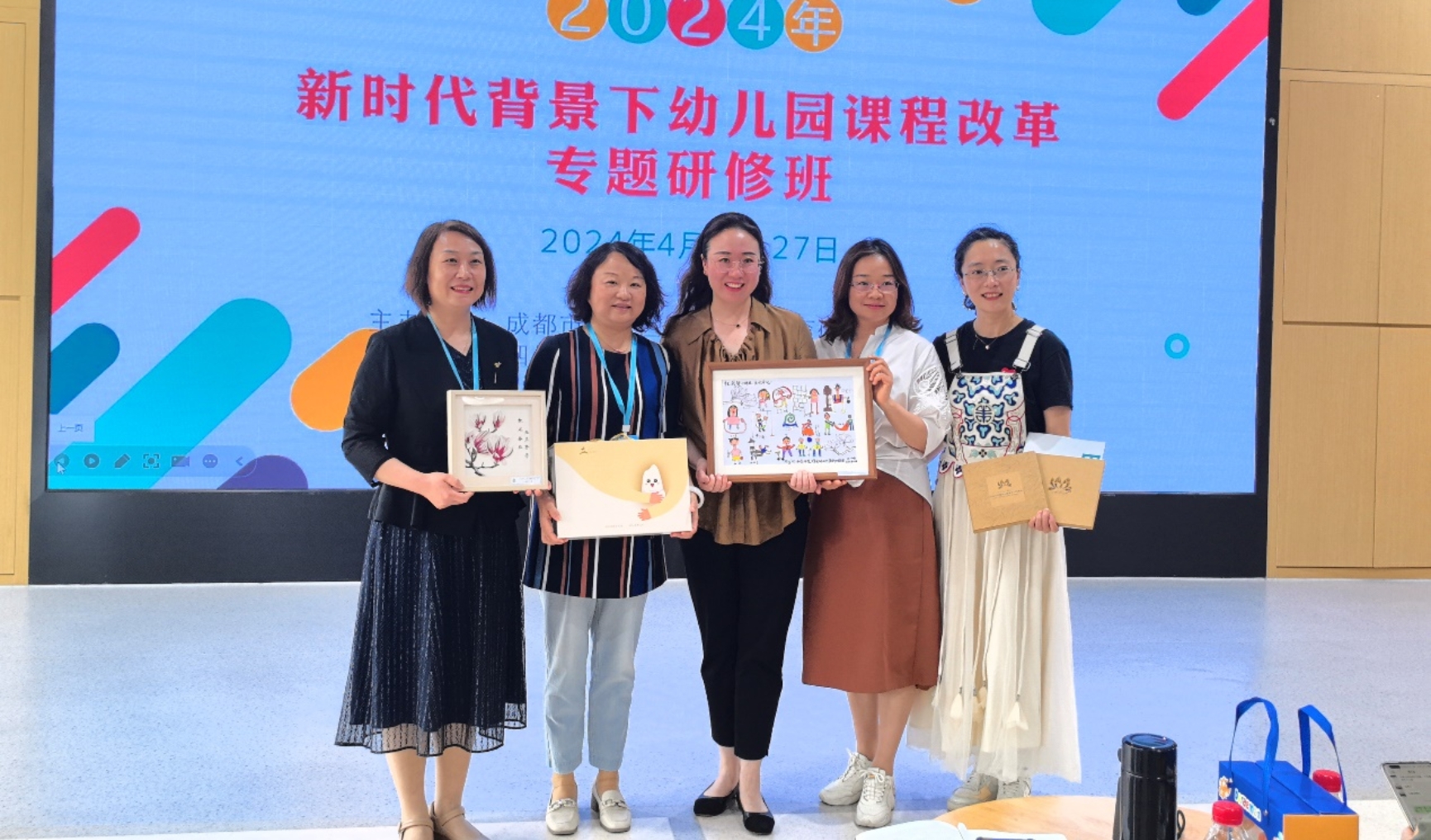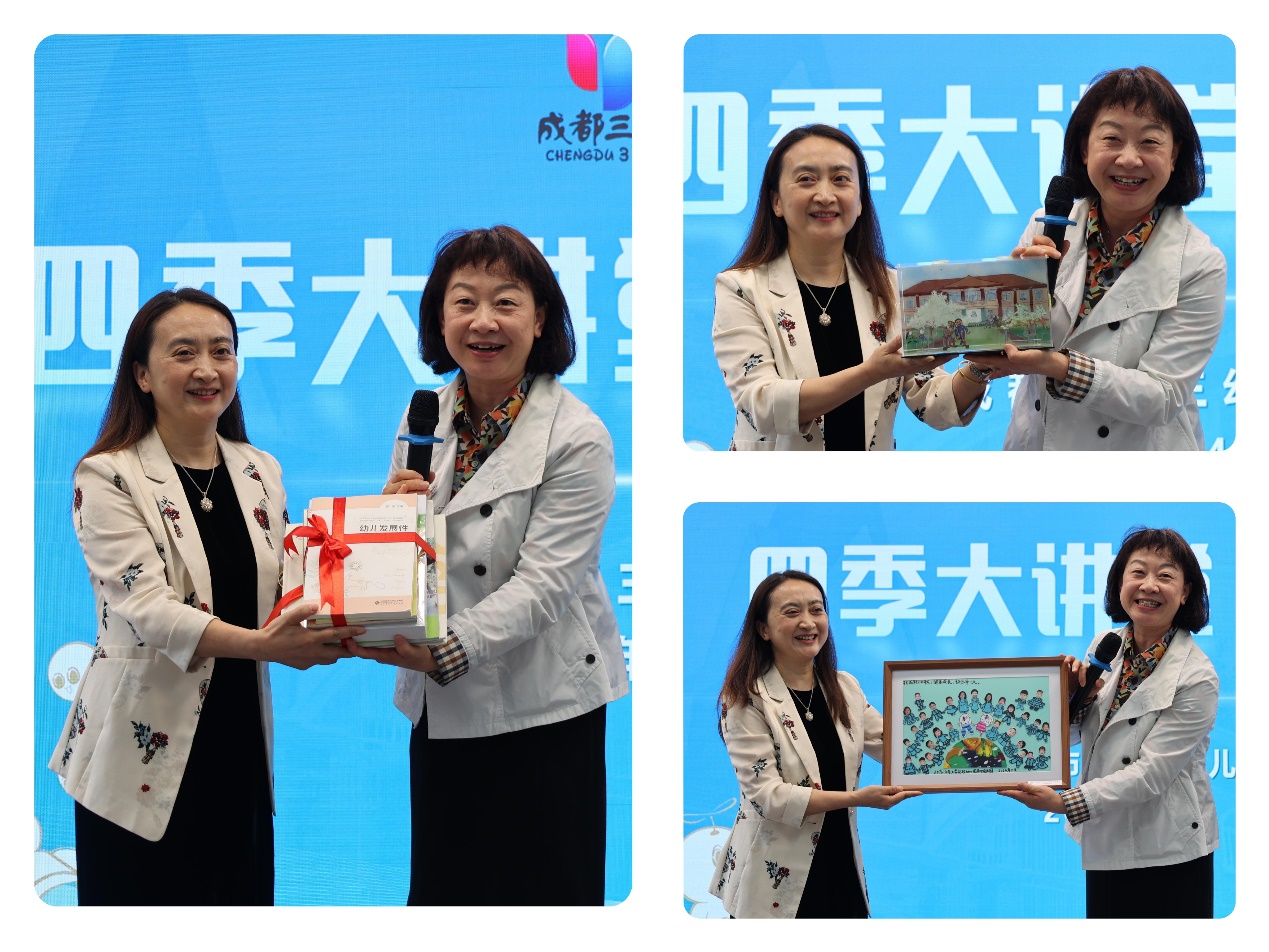 为祝贺成都市第三幼儿园110年华诞,黄珊总园长向成都三幼赠送了我园出版的书籍和幼儿作品作为生日礼物。