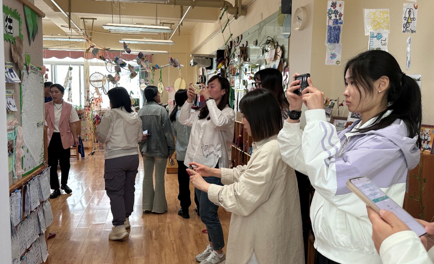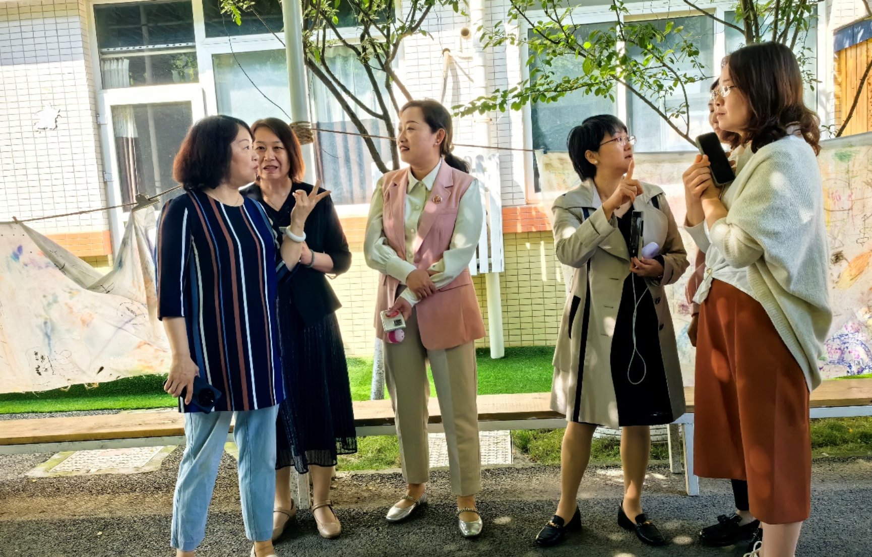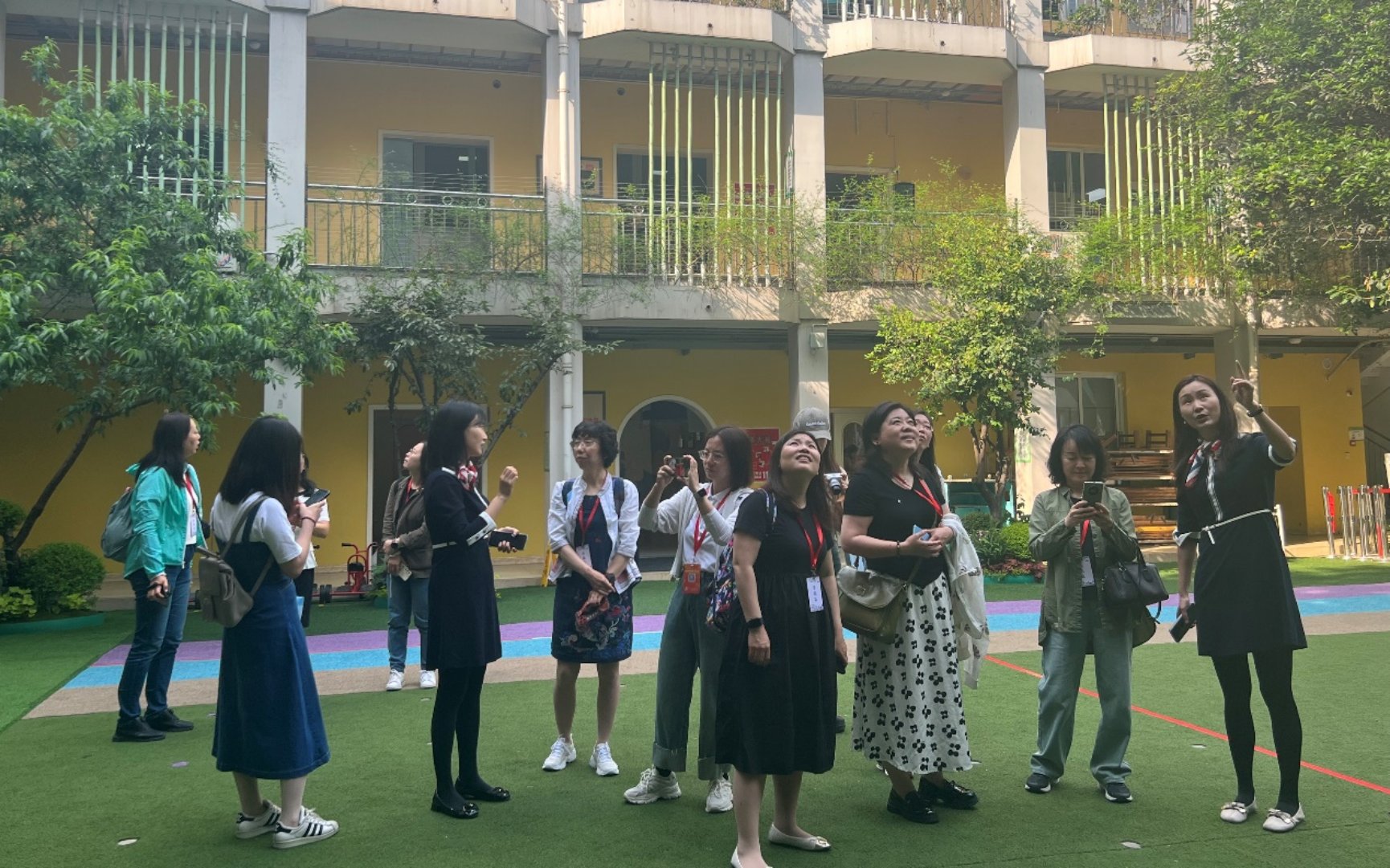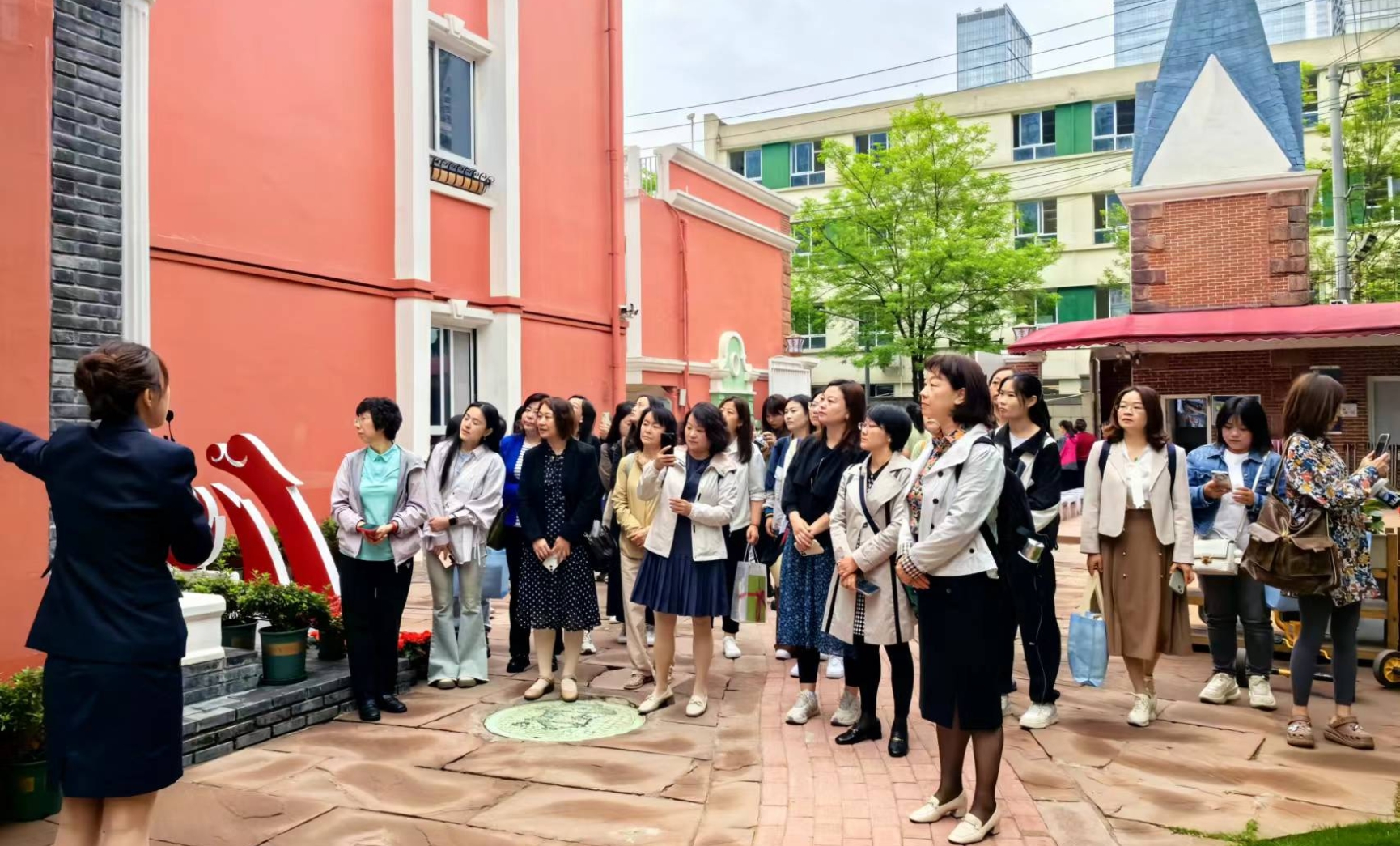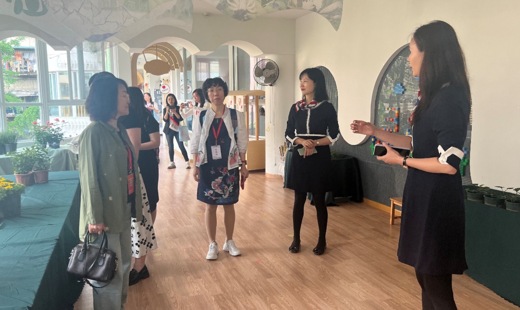 在红星幼儿园,我园教师首先参观了幼儿园的户外环境和各具特色的功能教室,特别关注了园方正在筹备的“阅历山海”活动。