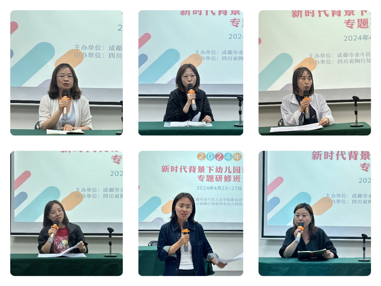 “新时代幼儿园课程改革”专题研讨:成都市锦江区教育科学研究院蒋晓明院长做题为《强国战略下新时代基础教育改革》的讲座,从国家战略的高度分析了新时代基础教育改革的目标、内容、特点等。我园总园长黄珊做《幼儿园园本课程的建构——以正规滚球app官方网站发展课程为例》专题讲座,分享我园在百年课程积淀基础上开展园本课程实践研究的历程。成都一幼司茜以《以养为核,自然而育》为题、成都二幼胡昕园长以《玩学相伴,绽放生命》为题,分享了园本课程的理念、内容、成果等有益经验。成都三幼曾琴园长以《游戏视域下的幼儿园活动变革》为题讲述了游戏视域下园所活动变革背后的理念与思考、过程中的困境与惊喜,呈现了当下园所“游戏+”四类活动模块的主要内容。