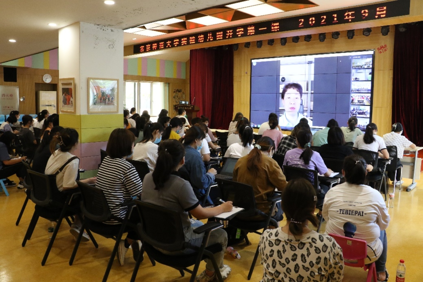 为做好幼儿发展性评价的全园普及工作,2021年8月27日,总部研究中心面向全体教学岗教师开展了“幼儿发展性评价专题培训”活动。培训采用线上线下结合的方式进行,由研究中心执行主任田瑞清主持。八所园和三个中心(研究中心、培训中心和发展中心)近600人参加了本次培训活动。